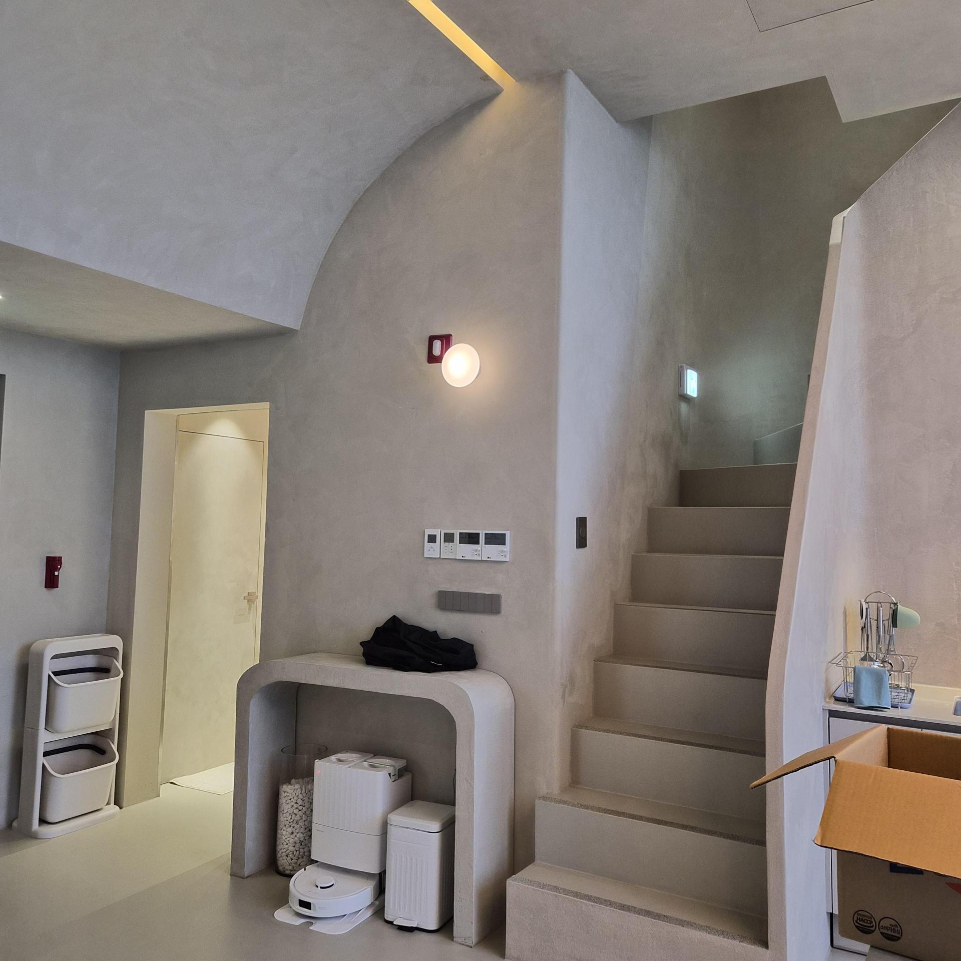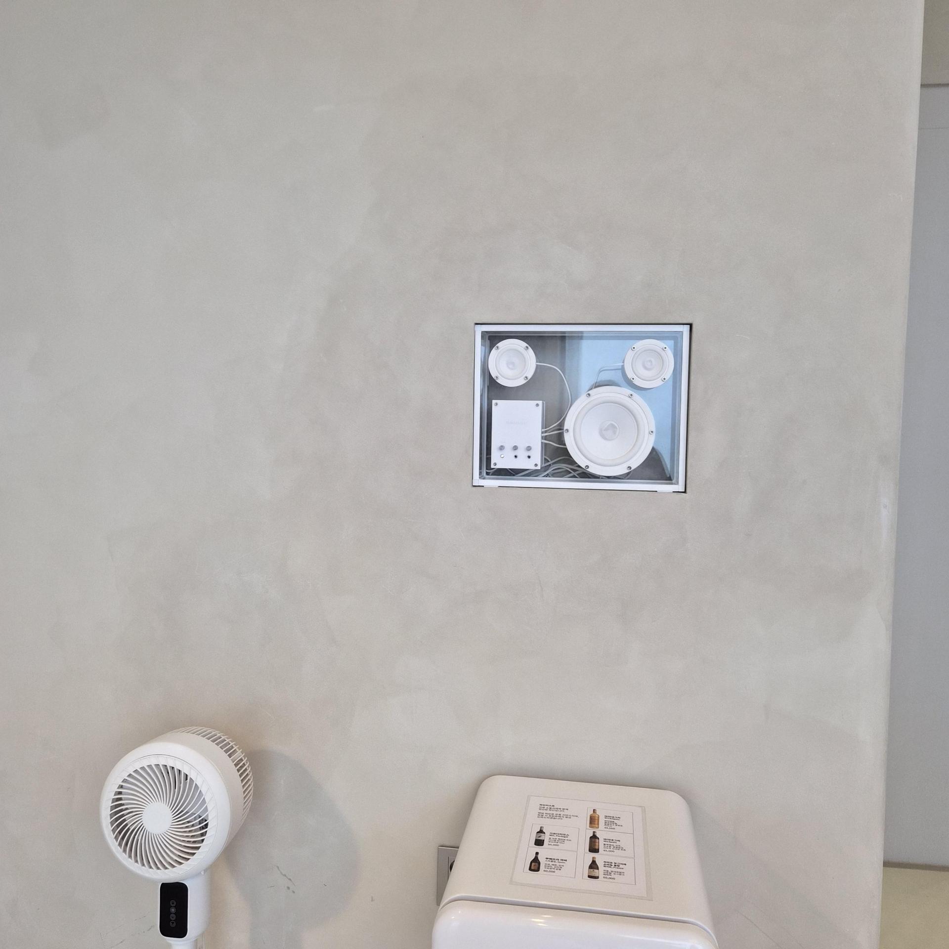 벽에 있는 스피커랑 연결된 스마트폰으로 노래틀어두니 분위기 있고 좋더라구요. 잘때빼고는 계속 틀어뒀던거 같아요