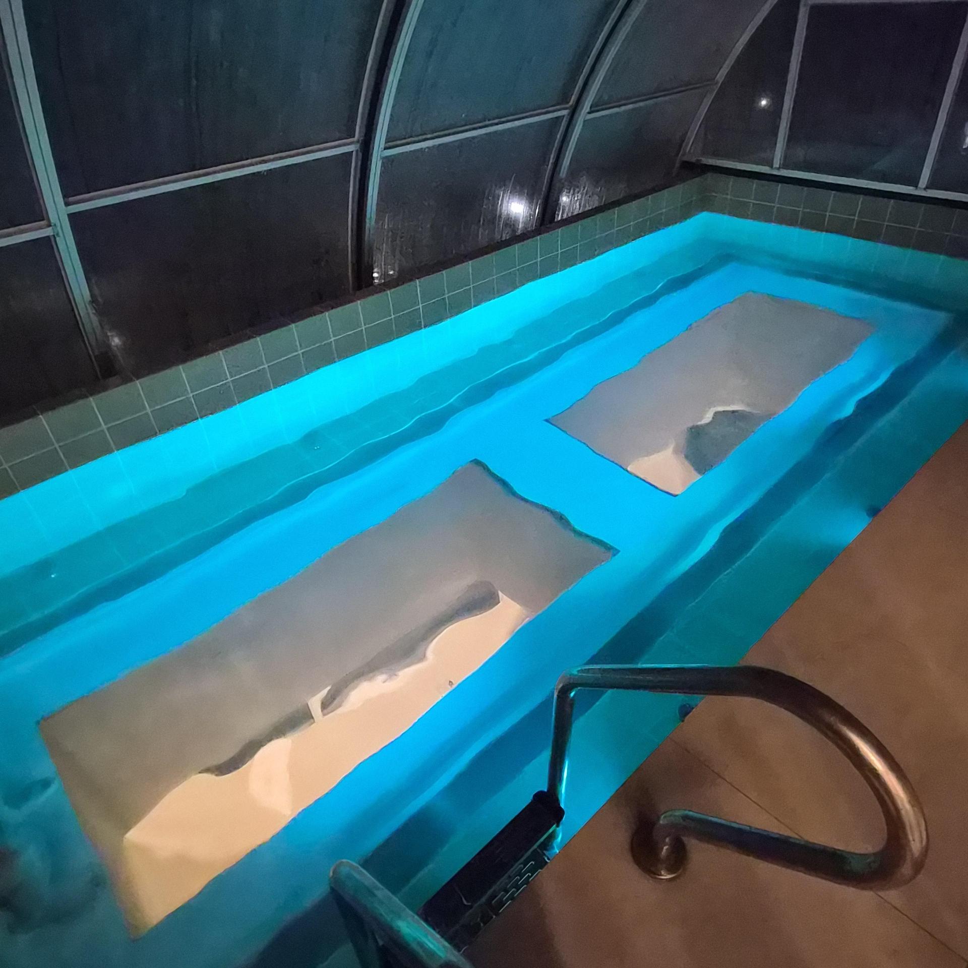 거실천장에서 바라본 풀장이 또 낮에는 방을 밝게 해주는 효과도 있는거 같고 물멍때리기도 좋았어요.